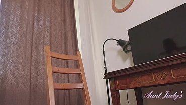 Feeling both horny and romantic, Anna Maria signs a love letter and seals it with a lipstick-laden kiss, which really gets her in the mood for more as she unbuttons her cream colored slacks and prances around in a bright red bodysuit. After feeling herself and caressing her figure, she unclasps her top and pulls it down to let out her big natural MILF tits, giving herself a good hard look in the mirror and sliding off the rest of her outfit. Naked and sat in her chair, she spreads her legs wide to rub and finger fuck her shaved and wet MILF pussy to intense orgasms just for you