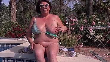 Your curvy redhead stepmom JoJo was out lounging by the pool in an oversized sheer top barely covering her bikini and you've decided to pop out and have a chat. She's confused why you're home right now and not at work, and while you try and lie your way out of it, she sees right through you and knows you've lost your job. So begins her lengthy speech about responsibilities and holding down a job, but you can't help sneaking peeks at her massive cleavage under that top, leading to a visible growth in your shorts that she can't help but notice. It's throwing her off her game and she can't ignore it any longer, so she opens her top to give you a better view of her bikini top barely covering her huge tits, inviting you to take out your big, hard cock to stroke it for her. As she walks you through exactly how she wants to watch you slowly stroke for her, she slowly pulls off her bikini top and lets her massive natural MILF tits out to play for you. She continues giving you detailed instructions as she strips for you, sliding off her bikini bottoms and shaking her big MILF ass, then spreading out wide in front of you, rubbing and finger fucking her shaved MILF pussy to orgasm right along with you and begging you to cum for her